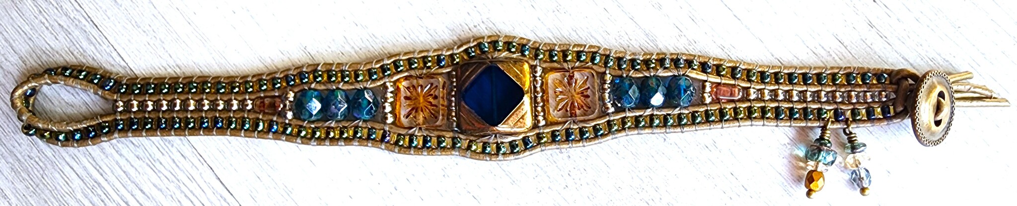 Blue Art Deco Czech glass center radiates blue! Wrap your wrist in style!!